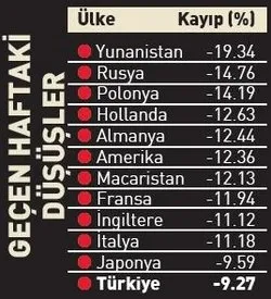 Dünya borsalarındaki genel durumu gösteren endeks olan MSCI endeksi son iki haftada yüzde 12 değer kaybetti. Borsalardaki şirketlerin piyasa değerindeki kayıp toplam kayıp 5.6 trilyon dolara ulaştı. Koronavirüsün küresel bir salgın haline gelip talebi yavaşlatabileceği endişeleri, petrol fiyatlarını 4 yılın dibine çekti. 20 Şubat'ta 59 dolar olan brent tipi petrolün varil fiyatı, 28 Şubat'ta 49.67 dolara indi. Petrolde yüzde 14.2 ile son 4 yılın en büyük haftalık kaybı gerçekleşti. Çin satın alma yöneticileri endeksi 50'den 35'e geriledi. Analistler, Çin ekonomisinin 30 yıldır ilk kez küçüldüğüne dikkat çekti. Altının ons fiyatı, haftanın son işlem gününde, teminat açığına düşen fonların rekor satışı ile yüzde 4'e yakın değer kaybederek bin 585 dolara indi. Risk alma iştahını gösteren ve yatırımcıların korku endeksi olarak bilinen VIX 2 yılın zirvesine çıktı.