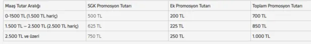 Aylık net geliri 1.500 TL'ye kadar emeklilere 500 TL promosyon ve 200 TL ek promosyon, 1.500 TL-2 bin 500 TL arasında olanlara 625 TL promosyon ve 225 TL ek promosyon, 2 bin 500 TL ve üzerinde olanlara ise 750 TL promosyon ve 250 TL ek promosyon ödeniyor.
