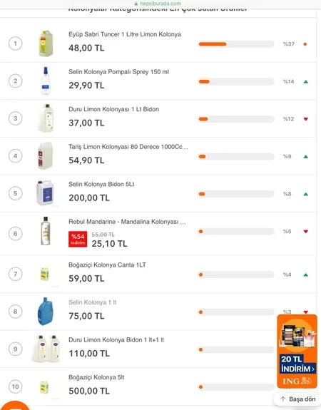 Dün sabah siteye girenler ise 1 litrelik ürünün tükendiğini, 50 mililitrelik ürünün ise 90 liraya satıldığını gördü. Bir başka ifade ile 25 Şubat'tan 11 Mart'a kadar aradan geçen iki haftalık sürede el dezenfektanı yüzde 4 bin185 zamlanmıştı. Av. Güngör, haksız kazanç elde edildiği iddiasıyla hem e-ticaret sitesi hem de Bursa'da bulunan tedarikçi firma hakkında, Sağlık ve Ticaret Bakanlığı'na şikâyette bulundu.