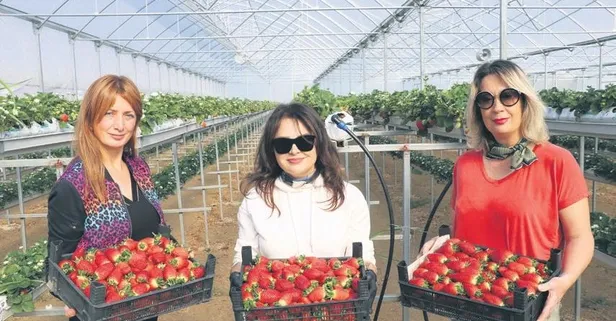 Aydın'da bankacılık yapan Feyzan Ecer Şahan ve Tülay Çelimli ile doktor Özlem Şahan, 4 milyon liralık yatırımla kentin en büyük tam otomasyonlu topraksız serasını kurarak çilek üretmeye başladı.
