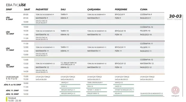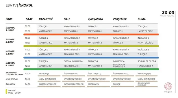 TRT EBA TV'nin 30 Mart - 3 Nisan yayın akışı...