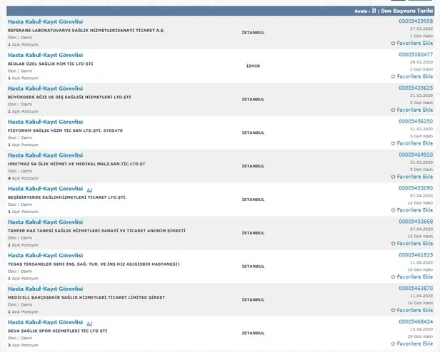 İŞKUR üzerinden birçok farklı şehirde bulunan sağlık merkezleri ve hastaneler tarafından yayımlanan personel alım ilanında adayların başvurularını İŞKUR üzerinden yapacağı belirtildi.