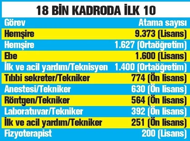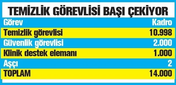 Ayrıca, temizlik hizmetleri, koruma ve güvenlik hizmetleri ve klinik destek elemanı olarak diğer hizmetlerde görev yapmak üzere toplam 14.000 sürekli işçi istihdamı yapılacaktır.