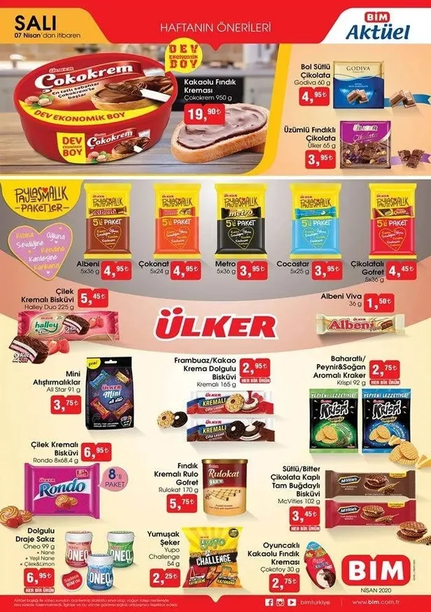 BİM marketlerinde 7 Nisan 2020 tarihi ile satışa sunulacak ürünlerin tamamı şu şekilde;