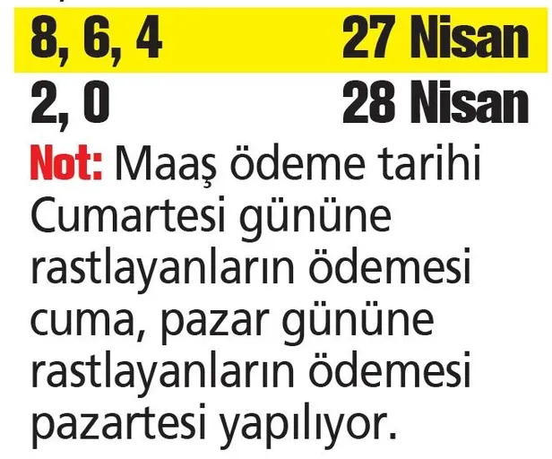 Maaşı bin 500 liranın altında olan 650 bin emeklinin kazancı arttı. Emekliler, 500 liraya varan zamlı aylıklarını Cuma gününden itibaren hesaplarında görecek. Peki, tahsis numarasına göre SSK, SGK ve Bağ-Kur emeklileri maaşlarını ne zaman alacak? Emekli maaşlarıyla ilgili son dakika haber ve gelişmeler takvim.com.tr'de...