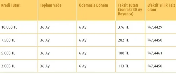 6 ayı ödemesiz dönemli, 36 aya kadar vadeli,