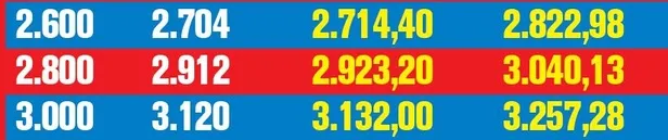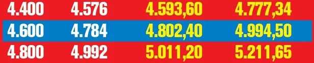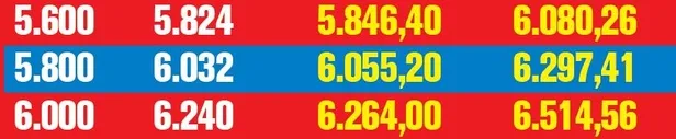 Halen en yüksek SSK ve Bağ- Kur emekli aylığı net 6 bin 28 lira 72 kuruş. Tavandan ödeme alan emeklinin eline yüzde 4 oranında yani 241,15 lira ek ödemeyle birlikte 6 bin 269 lira 87 kuruş geçiyor. Yüzde 4.4 artışa göre net maaş 6 bin 293 lira 98 kuruşa, ek ödeme de 251,76 liraya çıkacak. Böylece emeklinin eline toplam 6 bin 545 lira 74 kuruş geçecek.