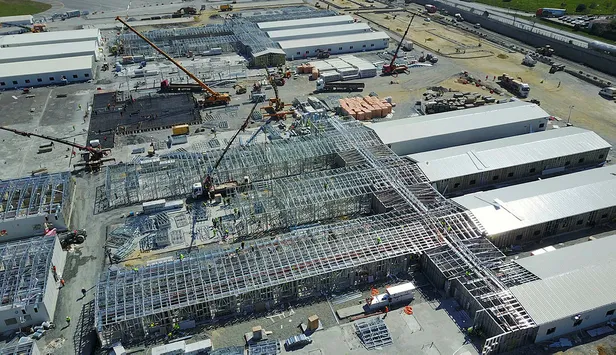 Çatı ve duvarları giydirilen blokların içinde de benzer şekilde hummalı çalışma devam ediyor. Bina dışında yoğun mesai sürerken, bina içerisindeki işçilerin de havalandırma ve kablolama gibi gerekli aksamları yerleştirdiği görüldü.