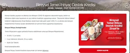 Küresel ölçekte yaşanan ve ülkemizi de etkileyen COVID-19 salgınının ekonomik hayata, üretim ve istihdama ilişkin olası hasarlarını en aza indirme hedefiyle uygulamaya alınan "Ekonomik İstikrar Kalkanı" tedbirleri doğrultusunda Ziraat Bankası olarak hane halkı geliri aylık 5.000,-TL ve altında olan bireysel müşterileri finansal açıdan desteklemek için yeni bir kredi uygulaması başlatıyoruz.