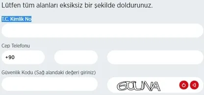 Başvuru sonucu öğrenme 2 aşamadan oluşuyor. Bilgilerin girilmesi, SMS ile doğrulama sistemi ve Kredi bilgileri sayfasıdır. İlk aşamada kişisel bilgiler forma işleniyor. Bu ekranda sırasıyla T.C. Kimlik No, Cep Telefonu numarası ve Güvenlik kodu giriliyor.