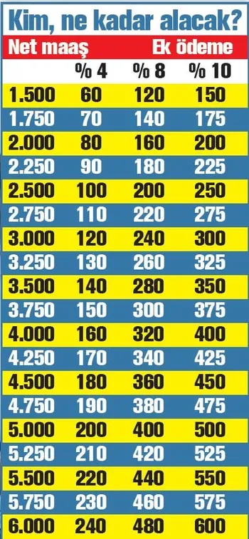 Vergi iadesinin yerine gelen ek ödeme maaşın yüzde 4'ü-5'i oranında oluyor.