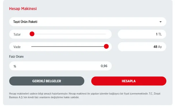 ZİRAAT BANKASI TAŞIT KREDİSİ FAİZ ORANI HESAPLAMA