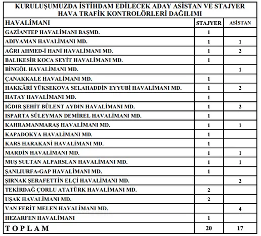Stajyer hava trafik kontrolör adayları için aranan şartlar,
