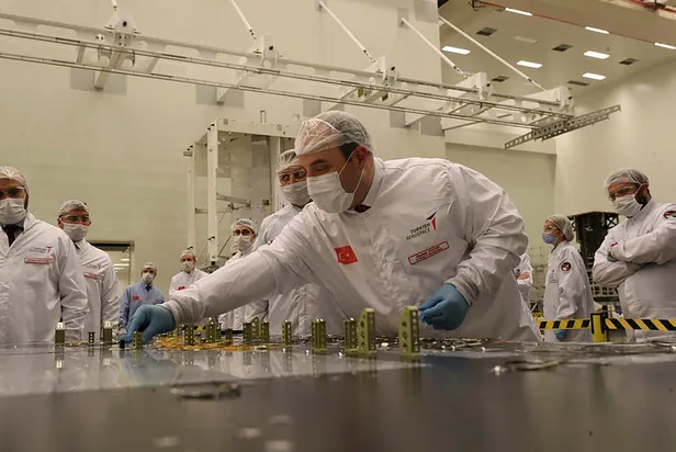 Türkiye'nin ilk yerli ve milli haberleşme uydusu Türksat 6A ile Türkiye'nin ilk yerli ve milli yüksek çözünürlüklü yer gözlem uydusu İmece'nin üretimindeki son durumun değerlendirildiği toplantının ardından TUSAŞ Uzay Sistemleri Entegrasyon ve Test Merkezi'ne geçildi.