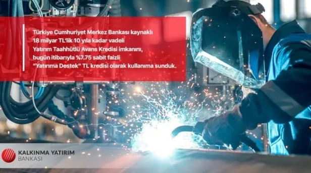 Türkiye Cumhuriyet Merkez Bankası kaynaklı 18 milyar TL'lik 10 yıla kadar vadeli Yatırım Taahhütlü Avans Kredisi imkanını, bugün itibarıyla %7.75 sabit faizli "Yatırıma Destek" TL kredisi olarak kullanıma sunduk.