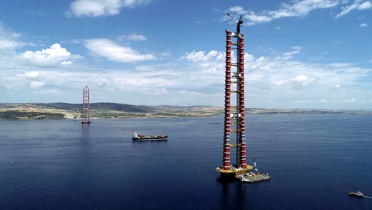 Çanakkale Boğazı'nın 'gerdanlığı' olacak 1915 Çanakkale Köprüsü'nde çalışmalara, koronavirüs salgını ile mücadele kapsamında gerekli izolasyon sağlanarak, ara verilmeden devam ediliyor. Çanakkale Boğazı'nda, Gelibolu'nun Sütlüce ve Lapseki'nin Şekerkaya mevkileri arasında yapımı sürdürülen 1915 Çanakkale Köprüsü'nün temeli, 18 Mart 2017'de Cumhurbaşkanı Recep Tayyip Erdoğan tarafından atıldı.