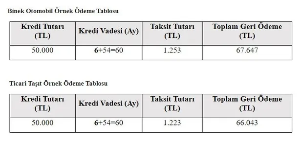 İkinci el binek araç (motosiklet dahil) veya ticari araç satın alacak bireysel/kurumsal müşterilere %0,82 faiz oranı ile taşıt kredisi imkanı sunulacak. Azami 6 ay ödemesiz toplam azami 60 ay vadeli 2. el binek otomobil ve ticari taşıt kredilerinde azami limit 150 bin TL olacak.