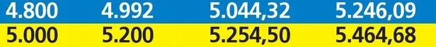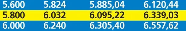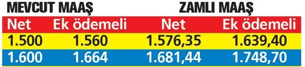 Maaş artacağı için, bunun üzerinden yüzde 4 oranında hesaplanan ek ödeme tutarı da yükselecek. İlk 6 aylık enflasyon, Merkez Bankası'nın beklenti anketindeki Haziran ayı TÜFE tahminine göre yüzde 5.09 olacak. Bu durumda maaşlar da yüzde 5.09 artacak. Bu, gelirlerde 90 ile 320 liraya varan artış getirecek.