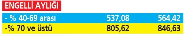 Bu artış, dul ve yetimlerin ödemesine de yansıyacak. Ölüm aylığı oranı yüzde 50 olan kişiye 500 lira yerine 559,20 ya da 612,90 lira, yüzde 25 olana 250 lira yerine 279,60 ya da 306,45 lira ödenebilecek.