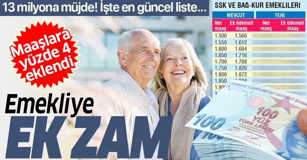Emeklilerin geliri bu ay artıyor. Temmuz zammı hem SSK ve Bağ-Kur hem de memur emeklileri için yüzde 5.75 çıktı. Bu ay maaşlar arttığı için her ay ödenen net aylığın yüzde 4-5'i oranındaki ek ödemenin tutarı da yükseldi.
