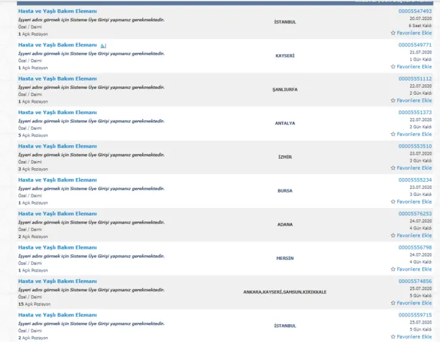 Çeşitli Kurumlarca Yayınlanan Hasta Bakıcı Dahil İşçi İlanları