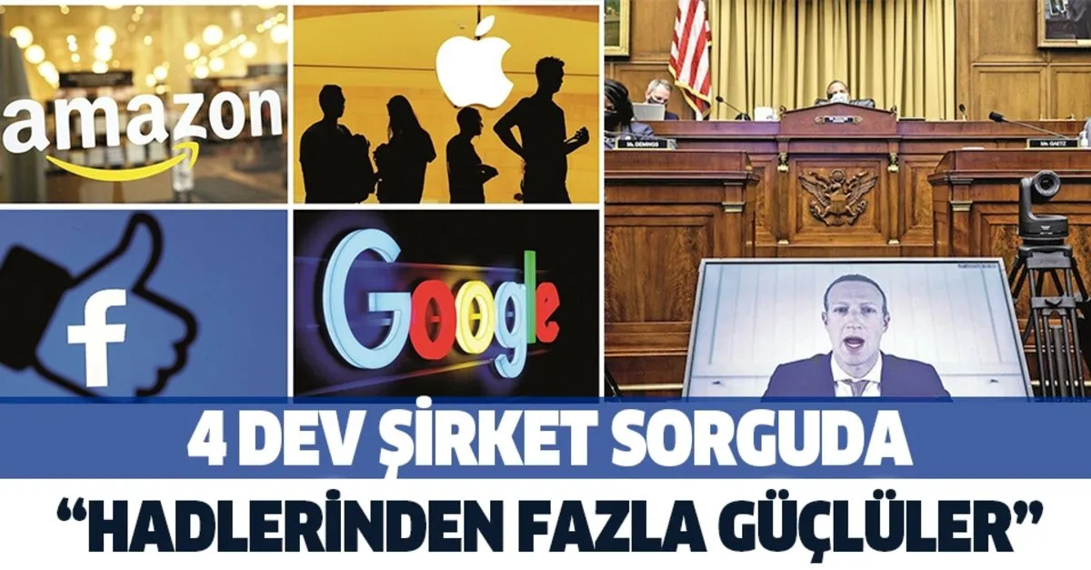 ABD'de, piyasa değerleri 5 trilyon doları bulan Amazon, Apple, Facebook ve Google'ın patronları, ilk kez eş zamanlı olarak bir Kongre toplantısında sorguya çekildi. Dört şirket, pazar konumları nedeniyle ağır eleştirilere maruz kaldı.