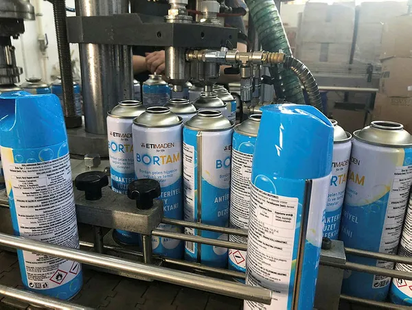Eti Maden Genel Müdürü Derya Maraşlıoğlu, BORTAM'ın bulaş riski görülen alanlarda yüzeylere sıkılarak kullanılabileceğini belirtti.