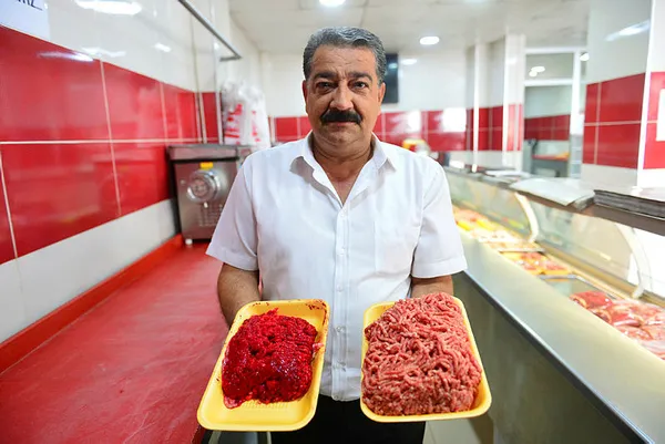 Gıda teröristleri halkı kandırmaya ve zehirlemeye devam ediyor. Halkın sağlığını tehlikeye atan gıda teröristlerinin yeni taktiği pes dedirtti. Adana Kasaplar Odası Başkanı Saruhan Murat Yağmur, hazır kıyma satın almamaları konusunda halkı uyararak, bazı marketlerin bu kıymaları tavuk taşlığı, atık iç yağ, kemik gibi malzemelerden elde edip, bici bici tatlısında kullanılan gıda boyasıyla kırmızı rengi verdiklerini dile getirdi. İşte detaylar…