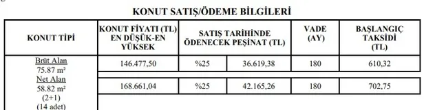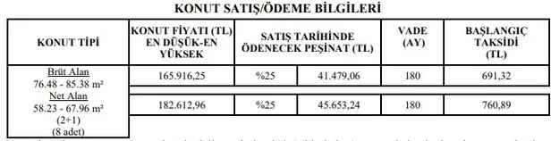 573 ve 391 TL taksitle 180 ay vadeli TOKİ kurasız daire satışı devam ediyor