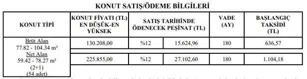 Mersin Gülnar Akdeniz Mahallesi'nde yer alan 39 konut 419 liradan başlayan taksit tutarı ile 125 bin 760 liradan satışa çıktı.
