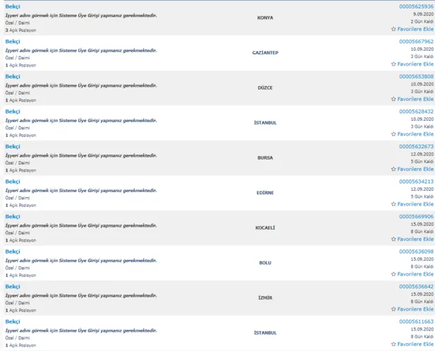Türkiye iş Kurumu tarafından yeni ilan yayımlandı. Yayımlanan ilana göre özel sektörde farklı illerde istihdam edilmek üzere ve en az ilköğretim mezunu olmak şartı ile bekçi alımları yapılıyor. Ancak ilana göre en az ilkokul mezunu olmanız gerekmektedir. Aynı zamanda başvuru yapacak adayların herhangi bir rahatsızlığının veya hastalığının olmaması gerekiyor.
