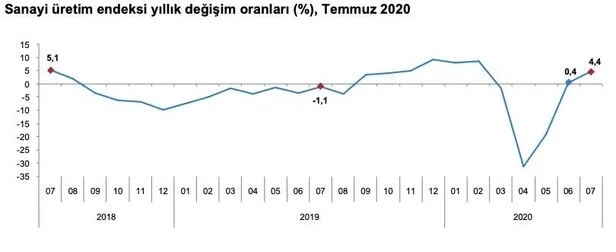Temmuzda yıllık bazda sanayi üretimi %4,4; perakende satış hacmi %11,9 arttı.