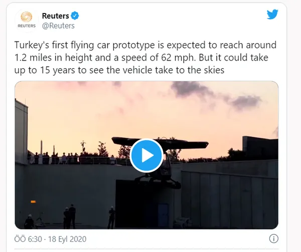 Dünyanın en büyük haber ajansı Reuters ise, "Türkiye'nin ilk uçan araç prototipi yaklaşık 1.2 mil yüksekliğe (yaklaşık 2 km) 62 mili bölü saat hıza çıkması bekleniyor. Ancak aracın gökyüzüyle buluşması 15 yıl kadar sürebilir" dedi.
