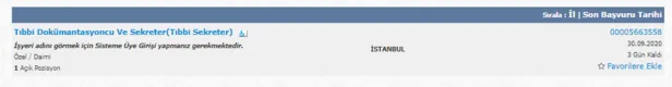 Bu sayfada MESLEK kısmına , başvuru yapmak istediğiniz pozisyonun adını yazıp ARA butonuna tıklayın.