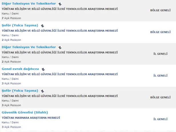 TÜBİTAK KPSS şartsız personel alımı (güvenlik görevlisi, şoför, evrak dağıtıcısı, teknisyen tekniker) İŞKUR başvuru ekranı açıldı
