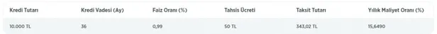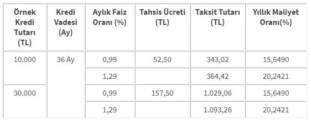 Dilerseniz anlaşmalı firma ve/veya bayilerinden alınan proforma fatura/kesin fatura ile 30.000 TL'ye kadar kredinizi aylık %0,99 faiz oranıyla ya da Bankamız müşterisi olup anlaşmalı olmayan firma/bayi/mağazadan alınan proforma fatura/kesin fatura ile %1,29 faiz oranı ile kredi ödemeleri eşit taksitlerle gerçekleştirilebiliyor.