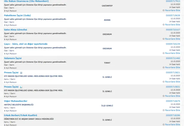 KPSS şartsız işçi alımları başvuru şartları - 13 Ekim İŞKUR üzerinden en az ilkokul mezunu farklı kurumlara işçi alınacak!