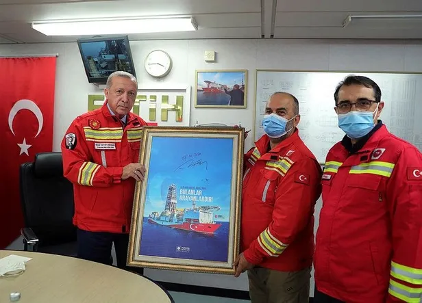 Başkan Recep Tayyip Erdoğan, Fatih sondaj gemisinde incelemelerde bulundu.