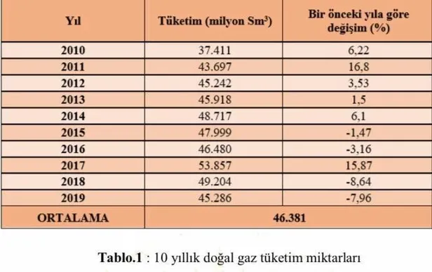 10 YILLIK DOĞAL GAZ TÜKETİM MİKTARI