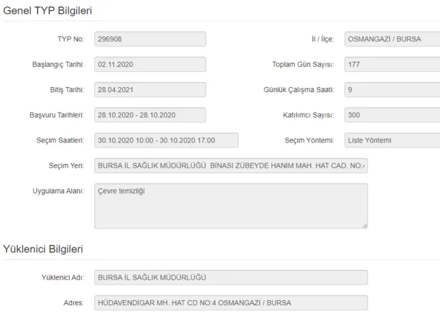 İş aramanın ilk adımı kayıttır. Kurum hizmetlerinden yararlanmak isteyen iş arayanların Kurum portalına üye olarak veya şahsen Kurum ünitelerine başvurarak kayıt olmaları zorunludur. Toplum Yararına Çalışma Programı kapsamında iki şehrin il sağlık müdürlükleri bünyesine yapılan personel alımında adaylar, geçici olarak istihdam edilecektir. Toplamda 1800 işçi alımı yapılacak olup, alınacak personeller toplamda 177 gün çalışacak. TYP arama sayfasına gittikten sonra kutucuklardan bir şey seçmenize gerek yoktur. ARA butonuna tıklarsanız ilanlar aşağıda sıralanacak. Burada ilanların yanında SEÇ yazan yerin altında TYP numarası var. Numaranın üzerini tıklayın ve üstteki Başvur butonundan müracaatınızı yapın.