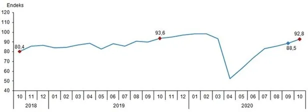 Bahçeşehir Üniversitesi Öğretim Görevlisi Dr. İsmet Demirkol, yaptığı değerlendirmede, endeks değerinin ekimde 92,8 olduğunu anımsatarak, bunun mart ayından bu yana görülen en yüksek değer olarak kayda geçtiğini söyledi.