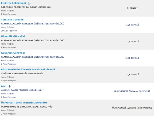 İŞKUR ÜZERİNDEN ALIM YAPAN KURUMLAR