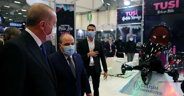 Başkan Recep Tayyip Erdoğan, önceki gün İstanbul'da TÜYAP Fuar ve Kongre Merkezi'nde açılış konuşmasını yaptığı 18. MÜSİAD EXPO Fuarı'nın stantlarını gezerken İstanbul Gelişim Üniversitesi'nin tasarladığı uçan araba 'TUSi'yi de inceledi.
