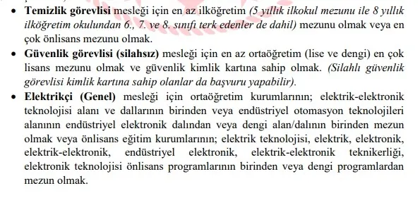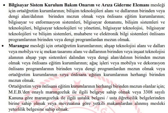 - Alım yapılacak kadrolar için ilgili meslek grubunda eğitimini tamamlamış olmak,