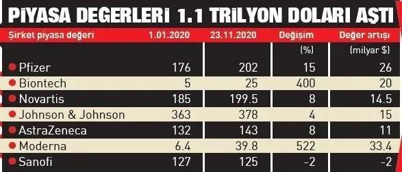 Pfizer'in piyasa değeri yüzde 15 artışla 202 milyar dolara çıktı. Oxford Üniversitesi'yle birlikte aşı geliştiren AstraZeneca, AZD1222 adlı aşının ortalama olarak yüzde 70 oranında etkili olduğunu açıkladı.