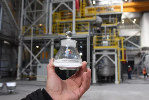 Enerji ve Tabii Kaynaklar Bakanlığı'nın milli enerji ve maden politikaları kapsamında, 3 yıldır üzerinde çalışılan lityum karbonat üretiminde son aşamaya gelindi. Eskişehir'de bor üretimi yapılan Etimadem Kırkla Tesisleri'nde kurulan pilot tesiste, hafta başından bu yana Türkiye'de ilk kez lityum karbonat üretilmeye başlandı. Pilot tesiste ilk yıl 10 ton üretim yapılacağı belirtilirken, bu kapasitenin daha sonraki dönemde 600 tona çıkarılması hedefleniyor.