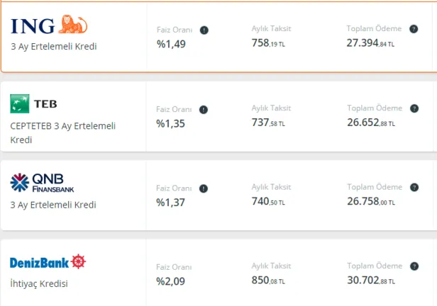 3 ay ödemesiz müracaat yapanın hesabına hemen uyuyor! 10.000-20.000 ve 30.000 TL kredi 36 ay vade! İhtiyaç kredileri öteki kredilere göre daha ziyada düşük faizli ve kısa vadeli kredilerdir. Bu tip krediler için bu günlerde bankaların yeni uygulamaları sayesinde şubeye gitmeden bile telefon ya da internet yoluyla kredi alınabilmektedir.