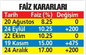 Merkez Bankası Başkanı Naci Ağbal başkanlığında toplanan Para Politikası Kurulu (PPK), politika faizini yüzde 15'ten 17'ye yükseltti. Böylece Ağbal başkanlığındaki iki PPK toplantısında gerçekleştirilen faiz artırımı 6.75 puana ulaşmış oldu.