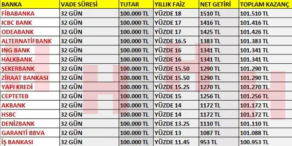 Son dakika faiz depremi: 32 günlük, 90 günlük ve 180 günlük mevduat faizleri tavan yaptı! En fazla kazandıran banka....