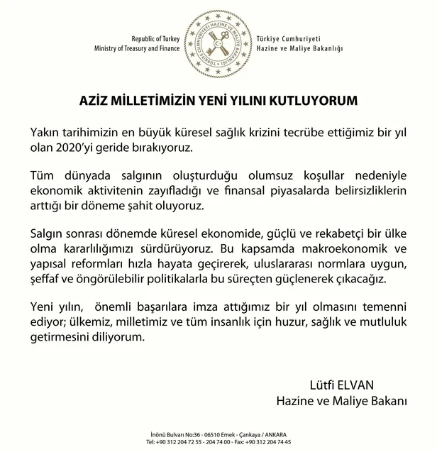 — Lütfi Elvan (@lutfielvan) December 31, 2020
